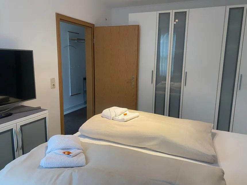 erwartet Sie ein luxuriöses Boxspringbett sowie ein Flatscreen-TV für