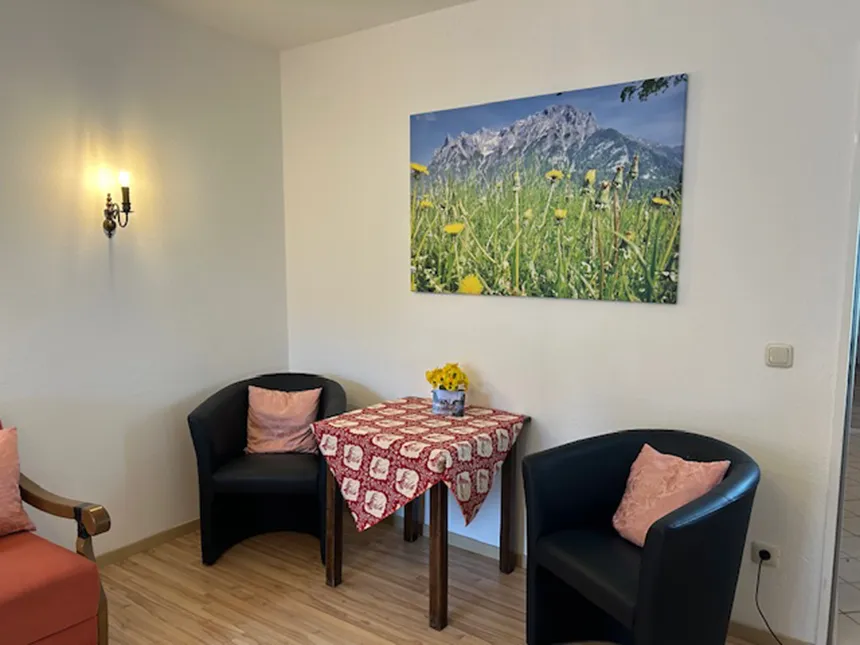 Herzlich Willkommen in der zauberhaften Ferienwohnung Flori in Mittenwald! Diese perfekte Urlaubsunterkunft befindet sich in der ersten Etage eines idyllischen Hauses und erstreckt sich über 50 reinen Wohlfühlraum für bis zu 4 Personen. Freuen Sie sich auf eine erstklassige Schlafcouch, die durch Qualität und Komfort besticht und sowohl tagsüber als auch nachts einen wunderbaren Rückzugsort bietet. Der geräumige Balkon, der sich auf der Ost- und Südseite erstreckt, lädt zu unvergesslichen Stunden im Freien ein. Genießen Sie die herrliche Morgen- und Nachmittagssonne sowie den atemberaubenden Panoramablick auf die umliegenden Berge. Lassen Sie sich von der malerischen Natur und dem Charme Mittenwalds verzaubern. Erkunden Sie die erstklassigen Wanderwege, atmen Sie die frische Bergluft und lassen Sie die Seele baumeln. Buchen Sie jetzt Ihren unvergesslichen Aufenthalt in der Ferienwohnung Flori und erleben Sie unbeschwerte Tage inmitten der bayerischen Alpen.