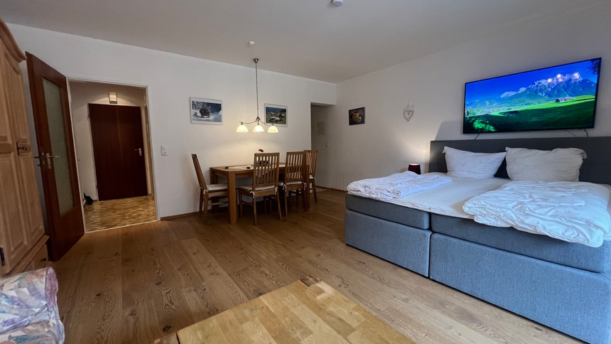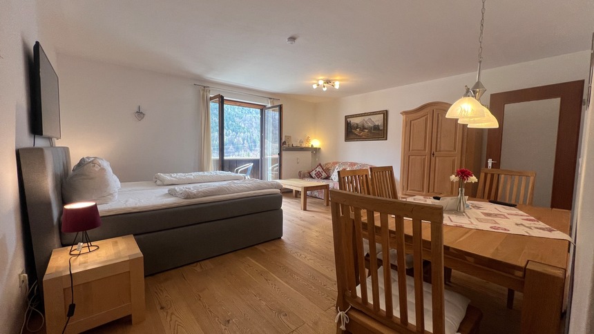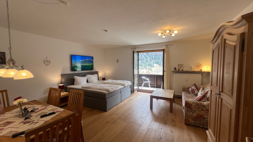 Sehr gemütliche 40 m² große Ferienwohnung für 1–2 Personen mit atemberaubendem Blick auf das Karwendelgebirge. Die Wohnung verfügt über einen großen Balkon, eine voll ausgestattete Küche (ohne Geschirrspüler).